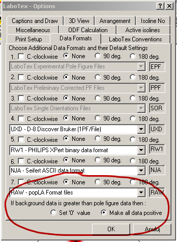 The choice of option for background of pole figure